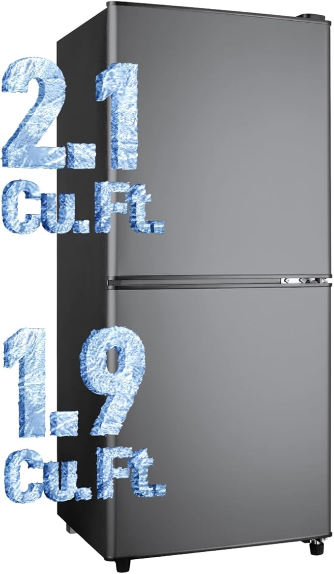 The Anypro fridge features a 0 cubic feet capacity split between a