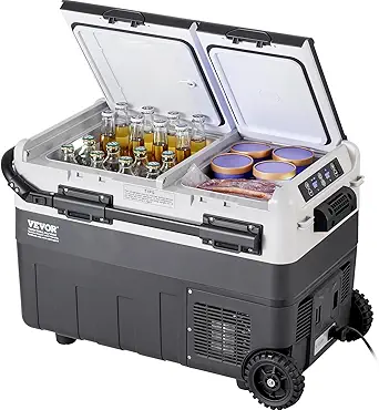 Enjoy fresh food and chilled drinks wherever your journey takes you with the VEVOR Portable Car Refrigerator. Its spacious dual-compartment design lets you customize the temperature zones for both freezing and cooling needs.