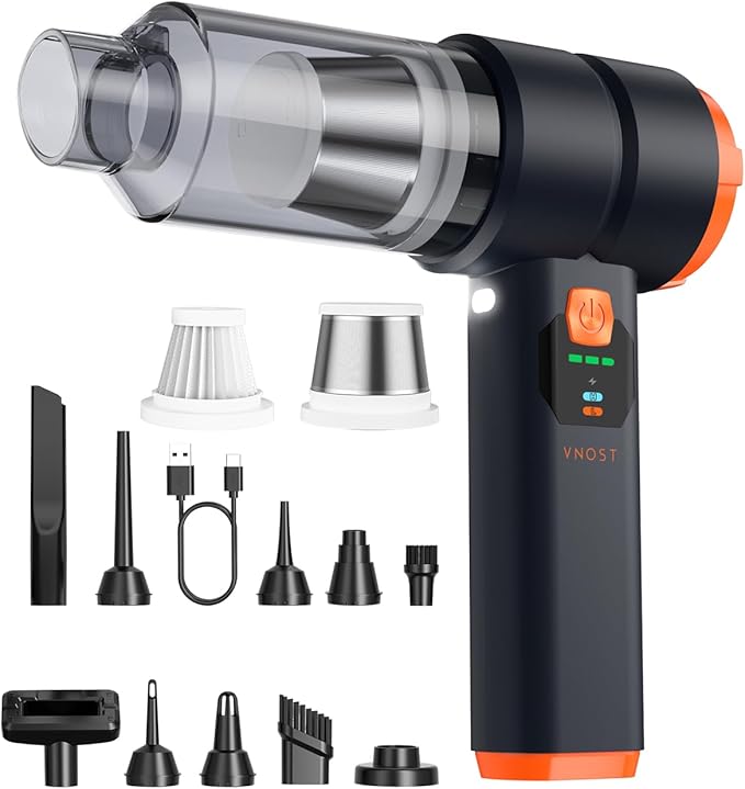 - Dual-purpose suction and blowing features enable thorough cleaning of car interiors, electronics, and delicate household items.